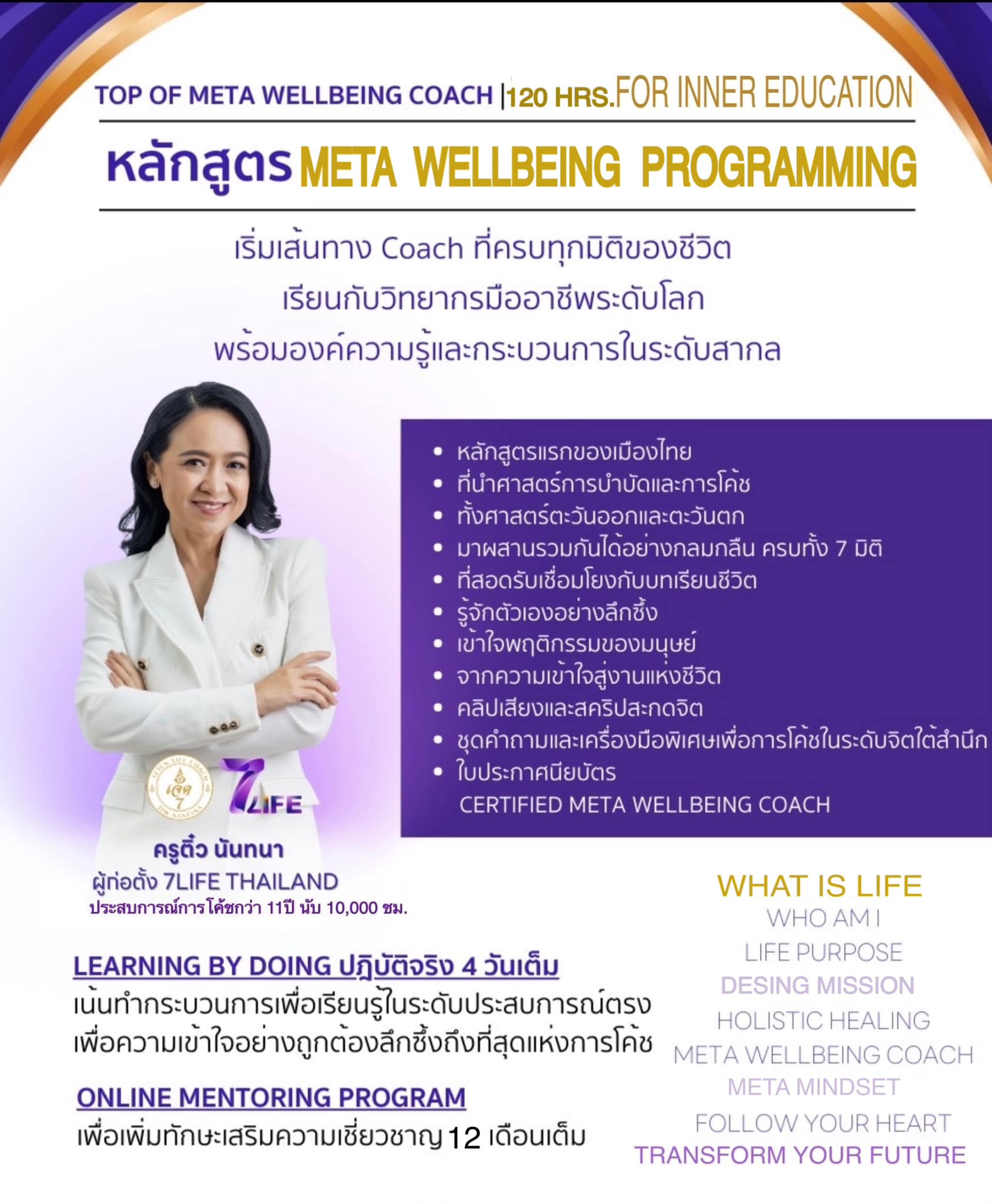 META WELLBEING PROGRAMMING120 ชั่วโมงแห่งการเรียนรู้โลกภายใน สู่วิถีชีวิตที่สมดุลและทรงพลัง (ทฤษฎี — ปฏิบัติ — ผลลัพธ์)